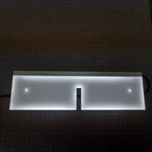 特殊な形の導光板製作 2026年1月22日 特殊な形でもレーザーカットで難なく製作可能です。 サングラスの様な形の導光板 配線は裏に回しております。 導光板の左右には、穴あけ加工もしております。 異形の導光板も1点から製作可能ですので お気軽にお問い合わせください。