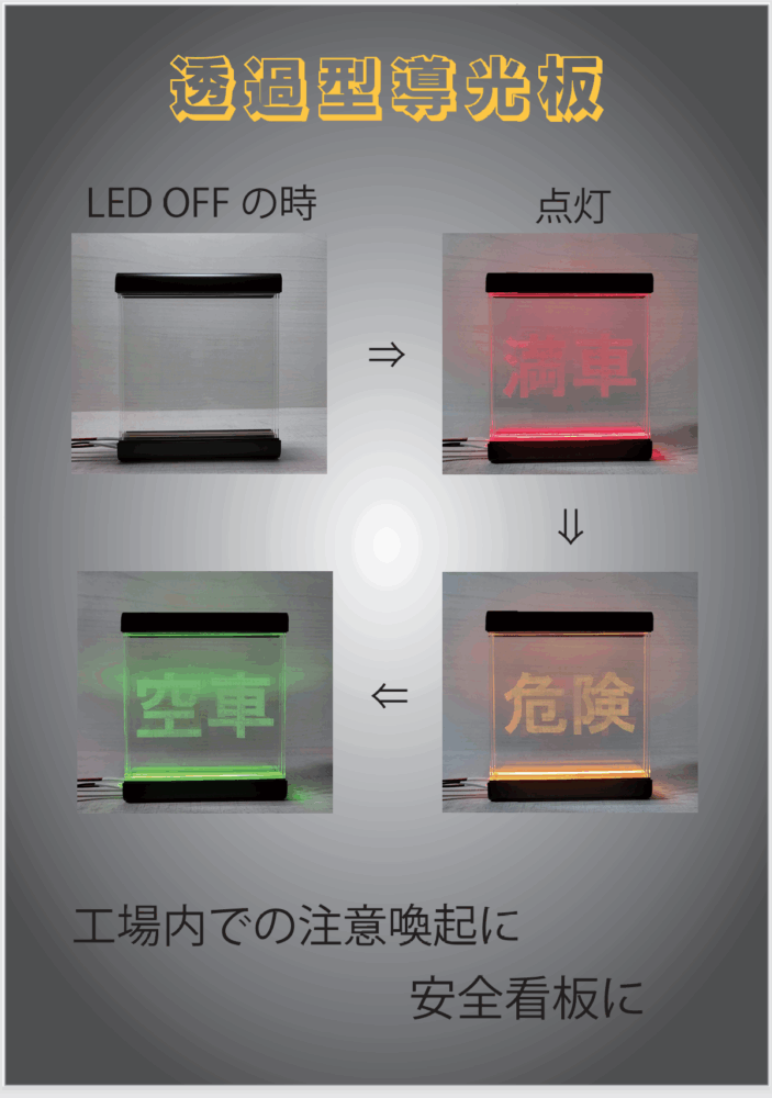 色と浮かび上がる文字でお知らせする事が可能です。