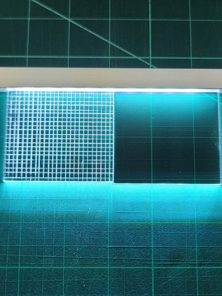 今回は、お問い合わせの多いワーロンシートを使った 簡単な照明をご説明します。 通常、導光板を光らせると写真のようにドットが見えます。 (このままでも明るくお気に入りなのですが、、、) ですが、導光板の発光面に乳半板などの […]